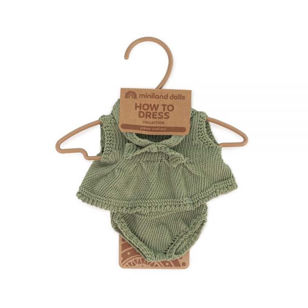 Colecția Miniland de ținute și pantofi realizate în culori neutre, care sunt atingerea finală perfectă pentru păpușile Miniland de 21 cm.