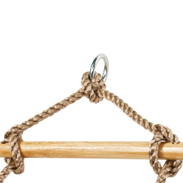 Scara cu trepte de lemn PP 2,5 m (1,80 m) 5 trepte Scara este confectionata din materiale de cea mai inalta calitate, prezinta un singur element de prindele in partea superioara si anume un inel realizat din otel galvanizat, iar in dreptul fiecarei treapte din lemn este un nod care impiedica alunecarea acesteia.