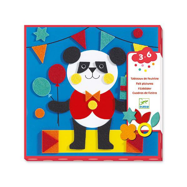 Oferă planșe cu chenare pentru a lipi fiecare dintre formele de fetru pre-decuoate. Piesele sunt foarte mici, pentru copiii care încă au tendința sa bage în gura sunt periculoase, la fel și în cazul în care aveți copii de vârste diferite, cum este și cazul nostru, trebuie atenție la cei mici. Băiețelul cel mare (3 ani) a fost incantat și l a ținut preocupat o ora întreagă. Recomand!