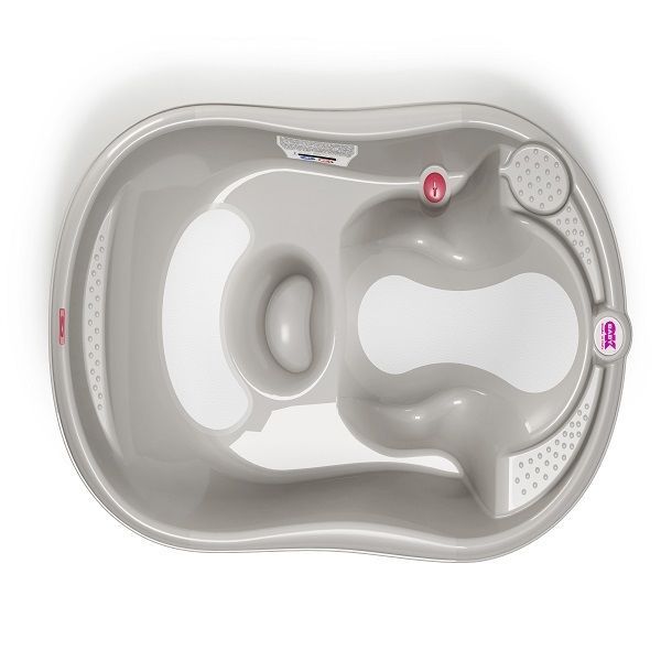 Cada Onda Evolution,  de la OKBaby, este  o cada ergonomica prevazuta cu indicator pentru nivelul / temperatura apei si dop pentru a facilita evacuarea apei.