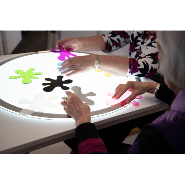 Un set distractiv de forme ce imită o pată de vopsea „căzută”, realizate din acrilic de 3 mm, colorat (transparent și opac) și oglindit. Setul include pete în culori primare și secundare (roșu, albastru, galben, verde, portocaliu și mov), precum și pete clare, negre, albe și o oglindă cu două fețe (petele negre, albe și oglindite sunt opace).
