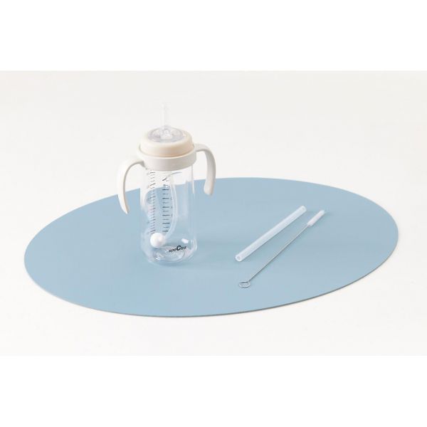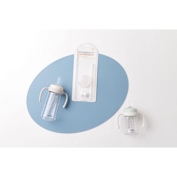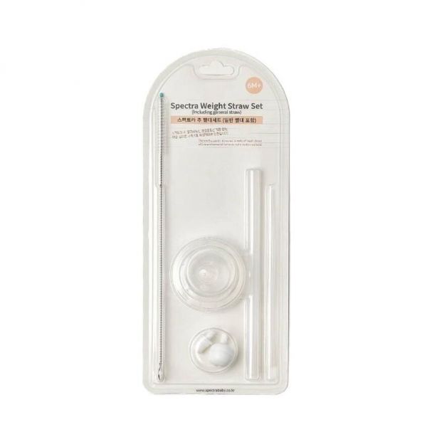 Setul include: sistem de fixare pe biberon, pai flexibil, pai drept, supapa mobila rotunda tip greutate, conector, perie pentru curatarea usoara a paielor