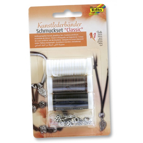 Setul include 3 benzi din piele artificiala fiecare cu dimensiunea de 1,5m si 8 pandantive.