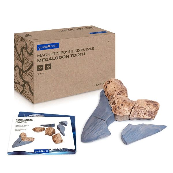 • Adu la viata creaturile fascinante si descopera misterele lumii preistorice, piesa cu piesa! Intra in fascinanta lume a fosilelor cu puzzle-ul 3D magnetic Guidecraft – Megaladon Tooth, un joc educativ care imbina distractia cu invatarea!