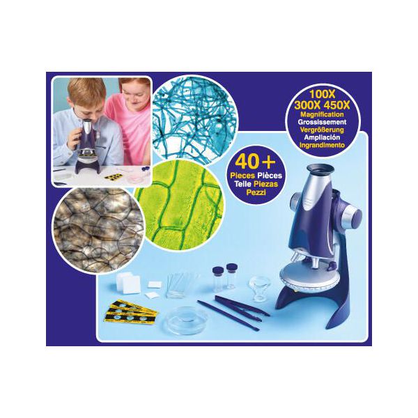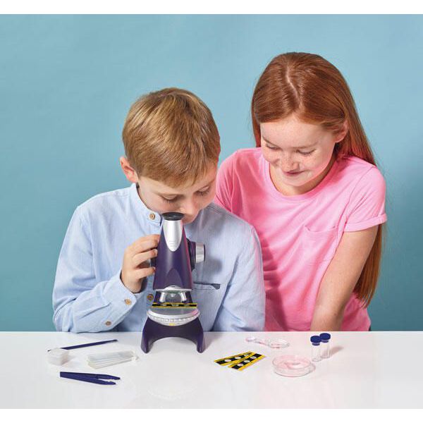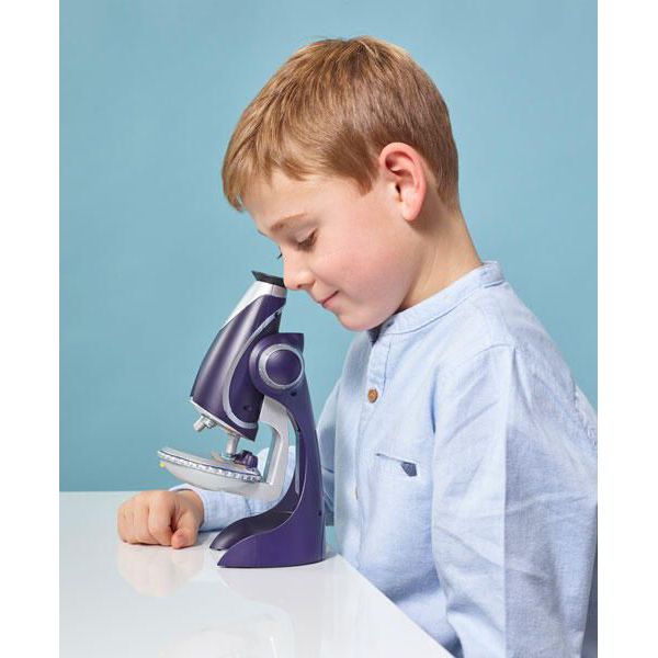 Ajuta-l pe cel mic sa descopere tot ce il inconjoara, in cele mai mici detalii, cu ajutorul acestui microscop. Forma acestuia este perfect adaptata copiilor. Butonul mare de reglare a focusarii faciliteaza folosirea.