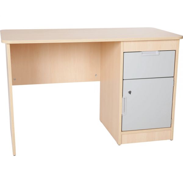 Birou din PAL laminat alb cu elemente colorate din placa MDF foliata.