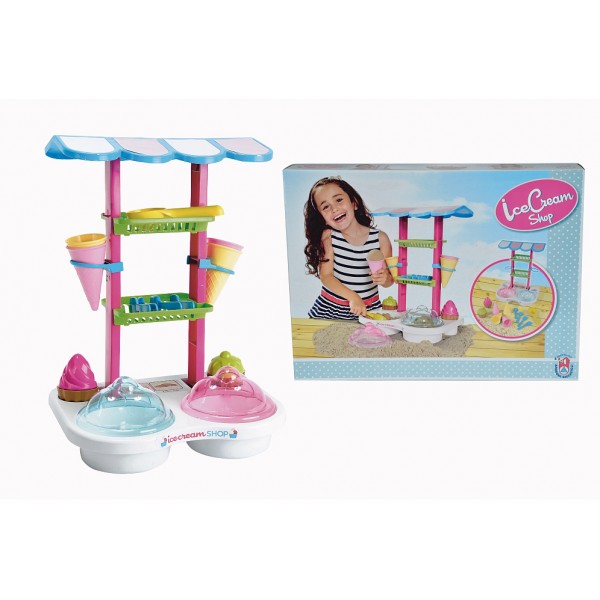Setul contine 2 rafturi pentru lingurite, suport lateral pentru vafele de inghetata, 4 cornete pentru inghetata, lingurite.