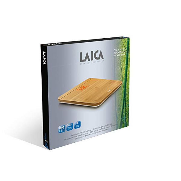 Cantar digital pentru persoane Laica PS1067 cu platforma din lemn natural de bambus