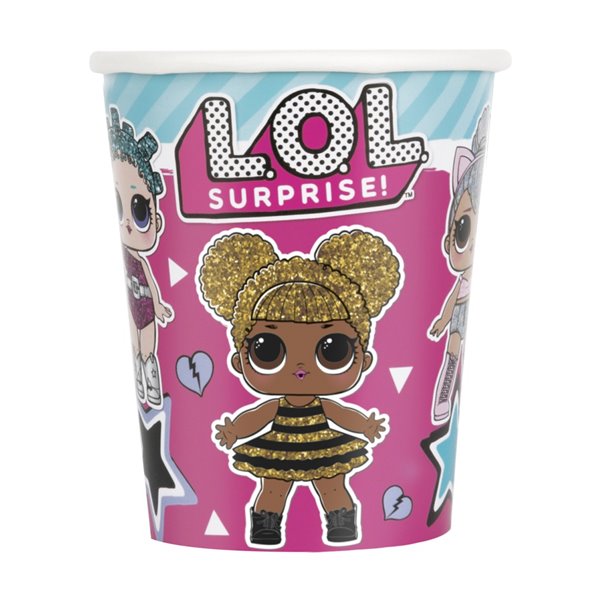 Pahare Petrecere LOL 266 ml. Setul contine 8 pahare din carton.