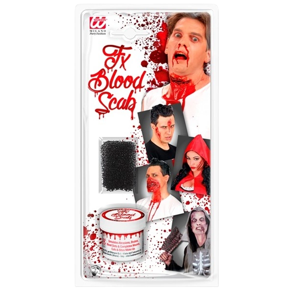 Setul Sange Scrab contine o cutie de 28,4 g sange fals si un buretel aplicator. Acest produs se foloseste pentru a evidentia cat mai real ranile false sau alte detalii ale machiajului.