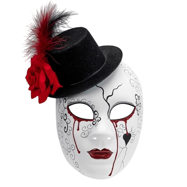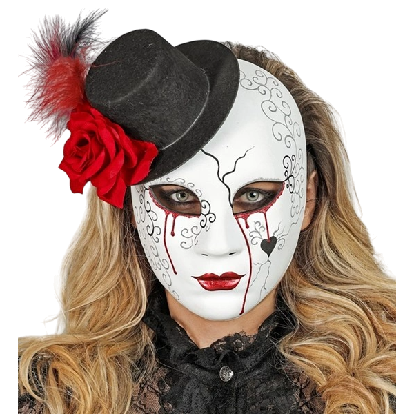 Masca "Commedia Dell`Arte" Lacrimi cu mini palarie atasata, confectionata din plastic dur, cu pictura expresiva potrivita pentru deghizari teatrale.