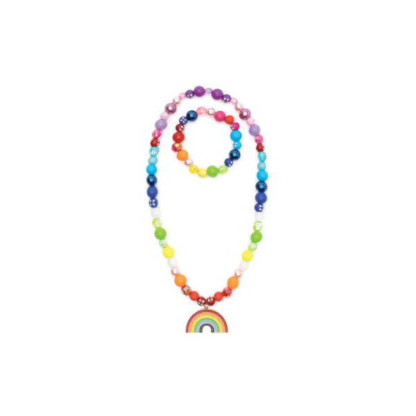 Acest set de colier și brățară cu mărgele multicolore prezintă un pandantiv curcubeu. Asortează această piesă cu orice ținută.