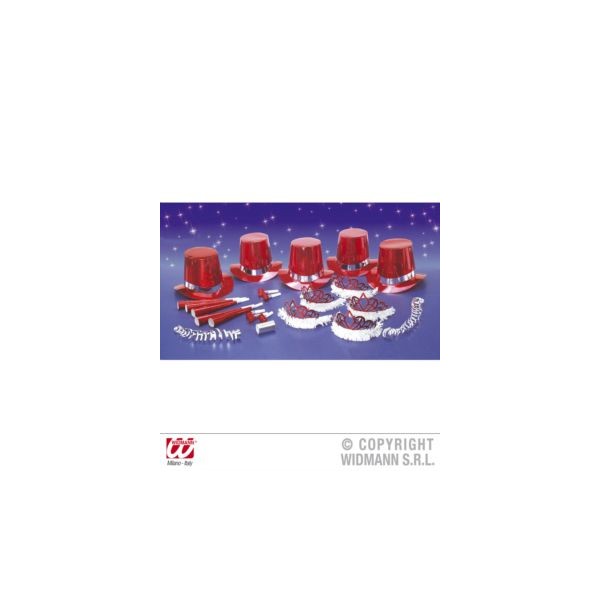 Include: 5 palarii, 5 coronite, 5 suflatori, 5 trompete si 1 rulou decorativ.