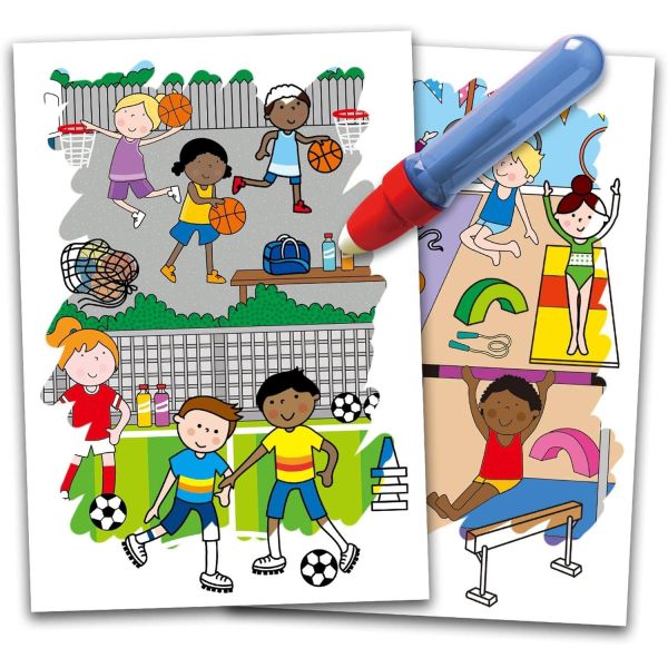 Ofera-i micutului o experienta unica cu aceasta carte de colorat. Este un produs educational si distractiv care va oferi micutilor o experienta unica. Aceasta carte de colorat este foarte simplu de utilizat: tot ce trebuie sa faci este sa umpli stiloul cu apa si apoi sa colorezi paginile. La contactul cu apa, imaginile ascunse cu tematica ora de sport vor aparea pentru a fi descoperite de cei mici.