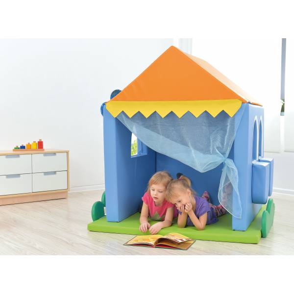 Designul din spuma in forma de casuta creeaza un loc de joaca minunat si sigur pentru cei mici.