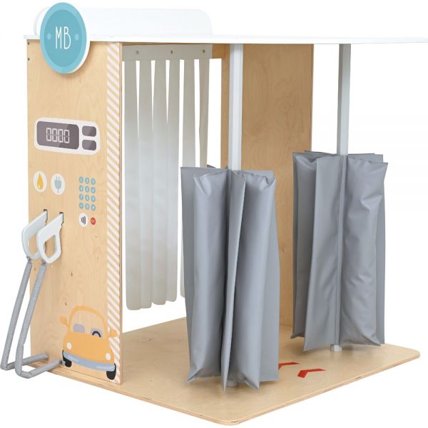 - Centrul structurii este o spalatorie mobila cu elemente care seamănă cu accesoriile reale gasite intr-o spalatorie auto.