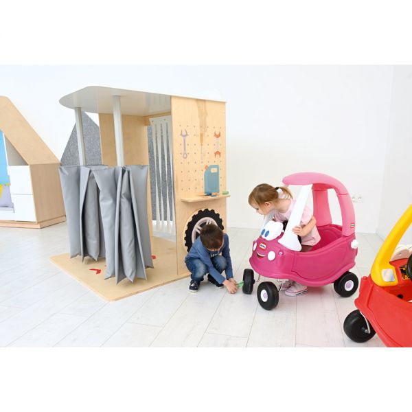 Colt de joaca de interior Benzinarie cu service si spalatorie de masini, gradinita si scoala