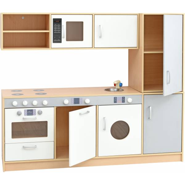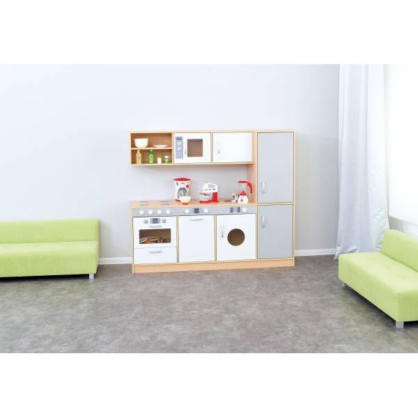Bucatarie pentru copii cu echipament complet pentru jocuri de rol.