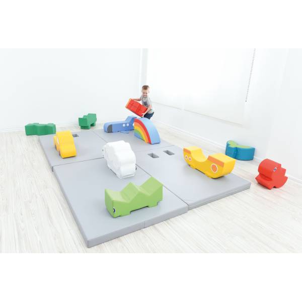 Iarba este realizata din spuma durabila, acoperita cu o tesatura din PVC durabila, usor de curatat.