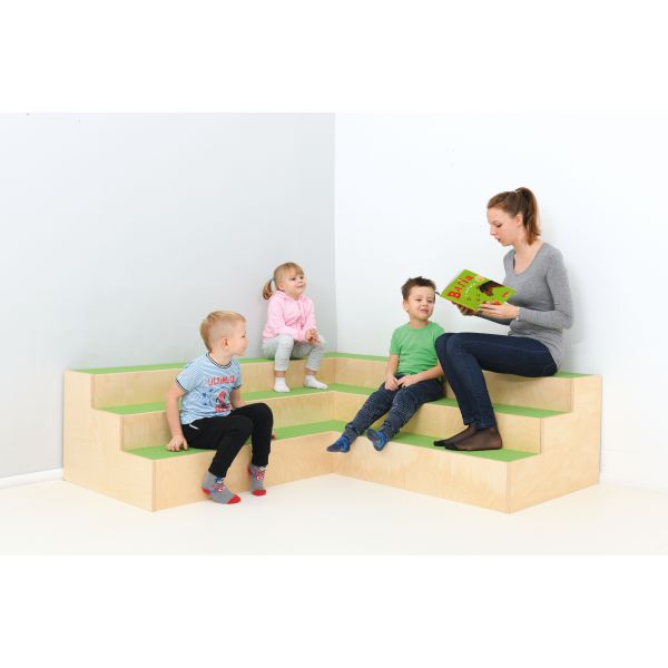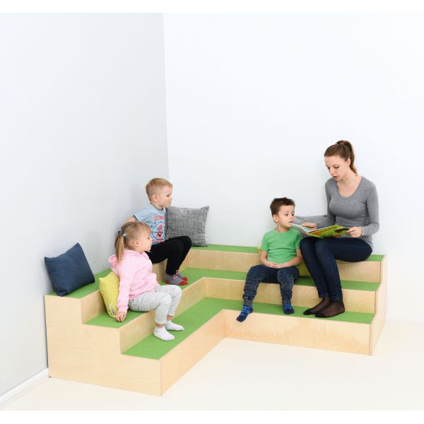 Platforma de colț cu trei niveluri fabricat din placaj cu grosimea de 18 mm, acoperit cu căptușeală rezistentă.
