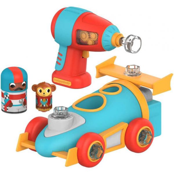 Copiii se vor distra pe cinste in timp ce vor asambla masinuta de curse, iar apoi o pot decora cu suruburile transparente incluse in set.