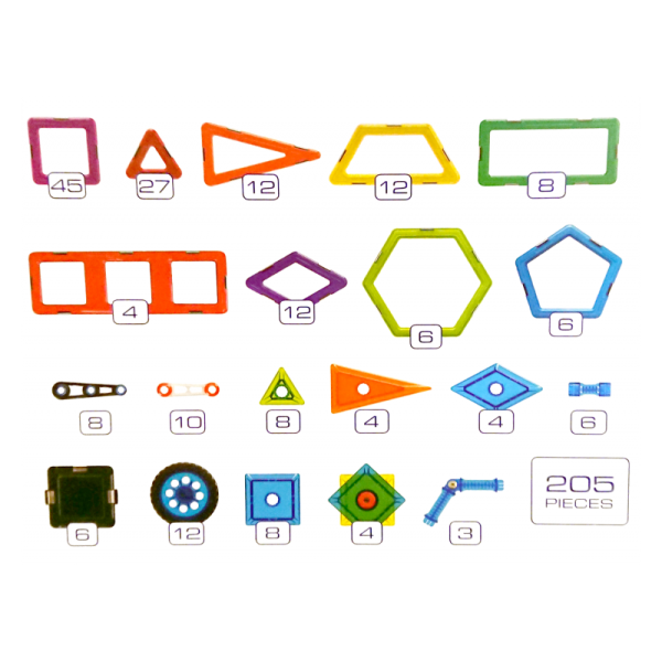 Geo Smart – Educational Set Deluxe, set educational deluxe, joc de constructie magnetic (205 piese)