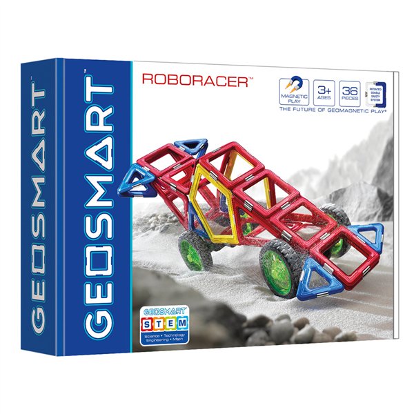 Geo Smart Roboracer este un joc de constructie magnetic din gama Smart Games, conceput special pentru copiii curiosi si pasionati de vehicule. Recomandat incepand de la 3 ani, setul permite construirea propriei masini de curse folosind piese magnetice sigure si rezistente. Fiecare piesa contine magneti protejati printr-un sistem dublu de siguranta, oferind o experienta de joaca sigura si durabila. Roboracer stimuleaza creativitatea si gandirea spatiala, fiind perfect pentru primele constructii libere sau combinate cu alte seturi Geo Smart.