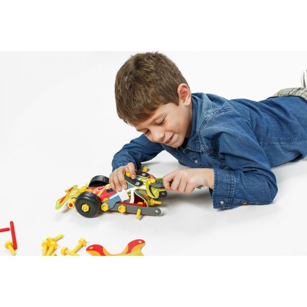 Joc de constructii Flexi Tech 77 Miniland Fiecare mic inginer poate construi obiecte din lumea reala. Setul este creat din plastic durabil. Foloseste piesele din pachet, piulitele, suruburile si construieste o masina de curse, o macara sau orice iti imaginezi. Combina partile flexibile cu partile rigide si dezvolta-ti imaginatia. Setul include:- 77 de piese- 1 brosura Varsta recomandata: 4-9 ani