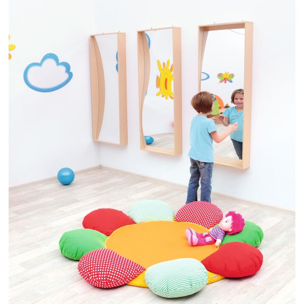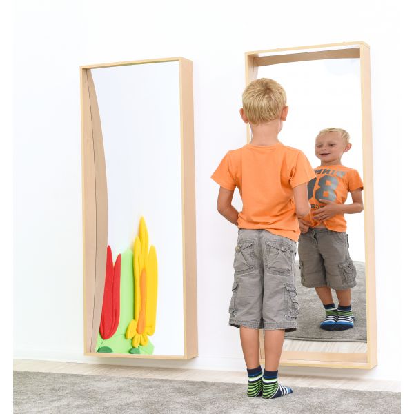 Oglinzile care distorsionează imaginea oferă copiilor posibilitatea de a se distra.