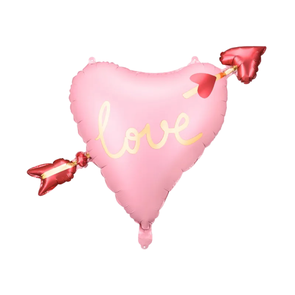 Balonul sub forma de inima roz cu sageata este realizat din folie, se poate umfla cu aer sau heliu.