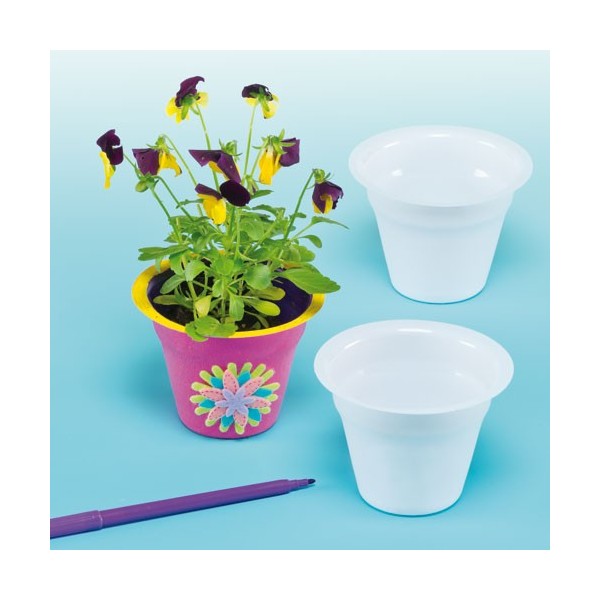 Setul include 10 mini ghivece din plastic alb pentru decorat.