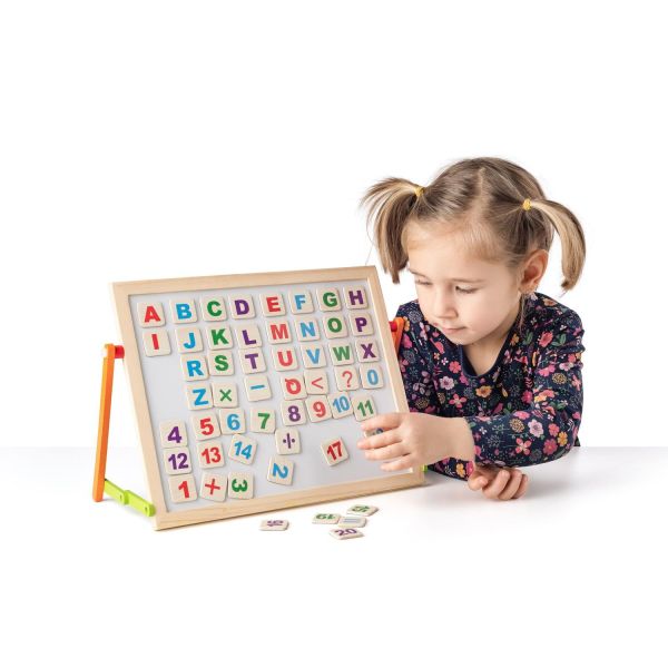 In pachet veti gasi un numar mare de litere magnetice, numere si caractere pentru practicarea compozitiei cuvintelor si exemple matematice simple, precum si crete colorate, pixuri cu pasla si un burete.