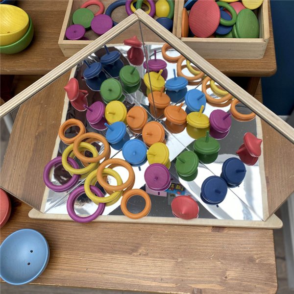 Oglinda 4 laturi pentru explorare – tickit® (corner mirror) este un element educativ fascinant, conceput pentru joaca senzoriala si explorare vizuala. Structura in unghi de 90° permite reflectii multiple pe fiecare latura si pe baza, oferind copiilor experiente vizuale captivante.