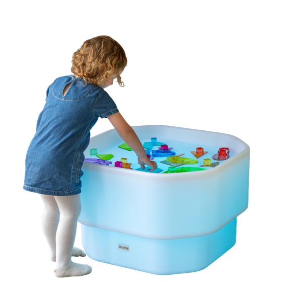 Masa senzoriala luminoasa Discovery Glow Mini Tuff Table – tickit® este un instrument educativ modern, conceput pentru activitati senzoriale si explorare creativa. Compacta si usor de utilizat, aceasta masa ofera iluminare ambientala in culori variabile sau alb, controlata prin telecomanda, transformand fiecare activitate intr-o experienta captivanta.