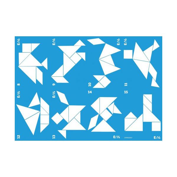 Acest puzzle oriental tradițional al tangramului implică realizarea de forme recunoscute în 7 forme de bază (5 triunghiuri, 1 pătrat, 1 romboid).
