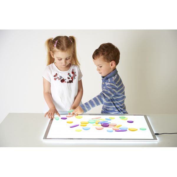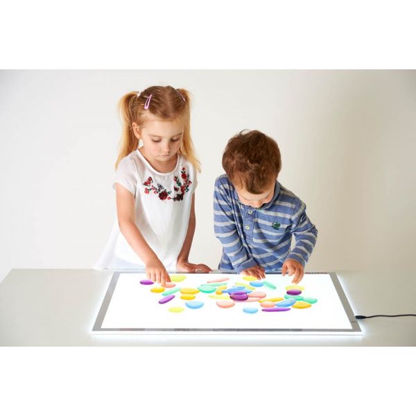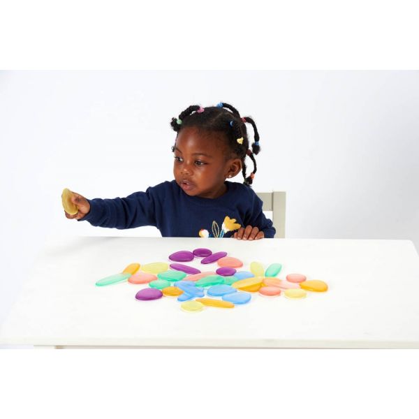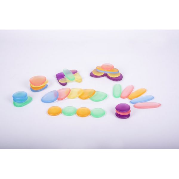 Un set fascinant care va captiva copiii încă de la vârste fragede! Aceste pietricele netede și translucide, disponibile în 3 forme și 6 culori vibrante (roșu, galben, portocaliu, albastru, verde, mov), sunt perfecte pentru dezvoltarea abilităților motorii și a creativității. Pot fi utilizate pentru sortare, numărare, crearea de modele sau explorare senzorială, oferind o experiență vizuală captivantă atunci când sunt plasate pe un panou luminos.