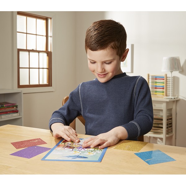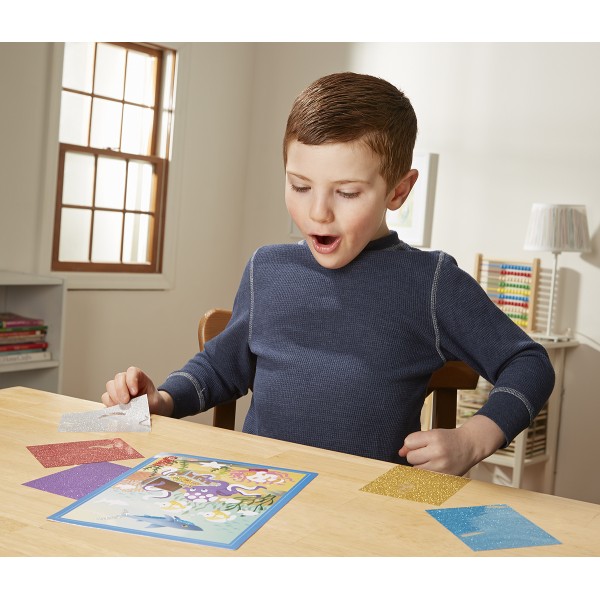 Setul include 2 imagini (reprezentate de creaturi marine si lumea subacvatica) si 5 foi cu sclipici.