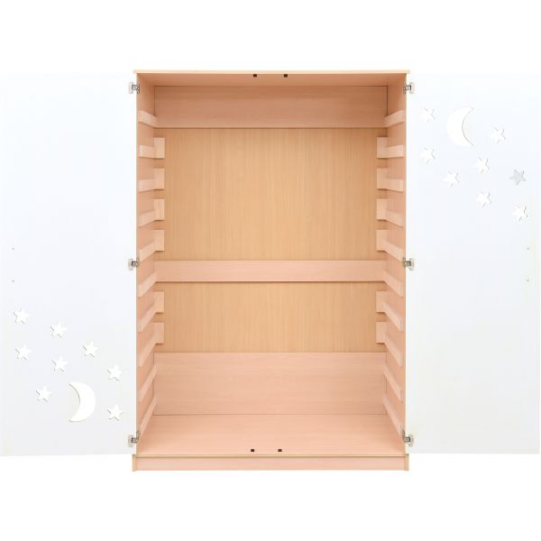 Dulap pentru depozitarea patuturilor de dormit cu lenjerie de pat (MO501002, MO501005 vândute separat). Dulapul este realizat din PAL in ton de mesteacan si retine pana la 10 paturi.