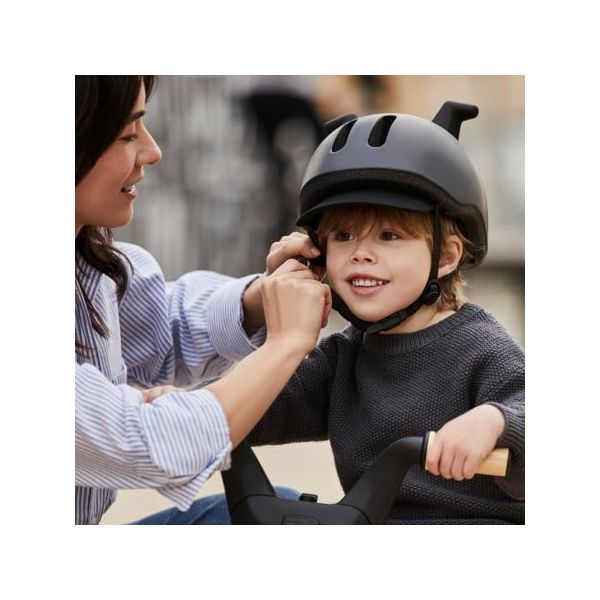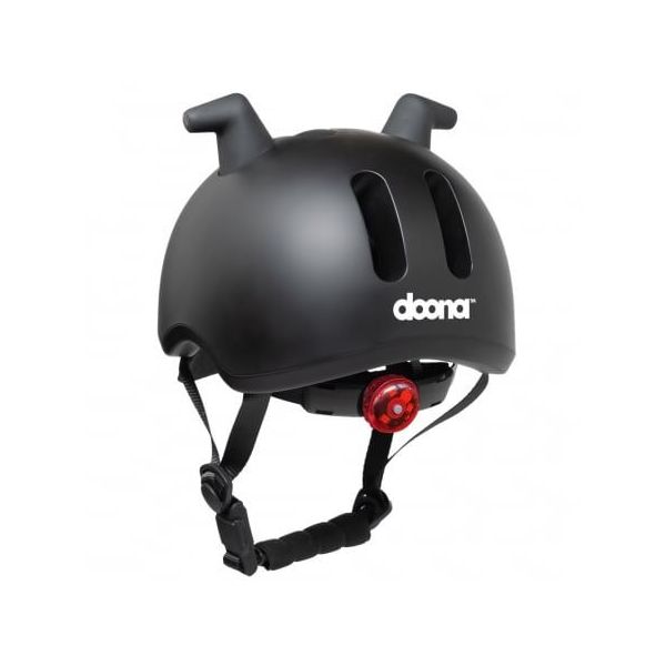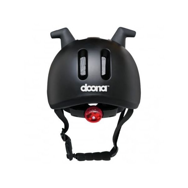 Casca de protectie Doona Liki Trike este cu adevarat remarcabila datorita coarnelor sale distinctive din silicon si designului elegant negru mat. Cozorocul ofera protectie solara, in timp ce orificiile pentru flux de aer amplasate strategic, promoveaza o ventilatie optima pastrand confortul micutului aventurier.