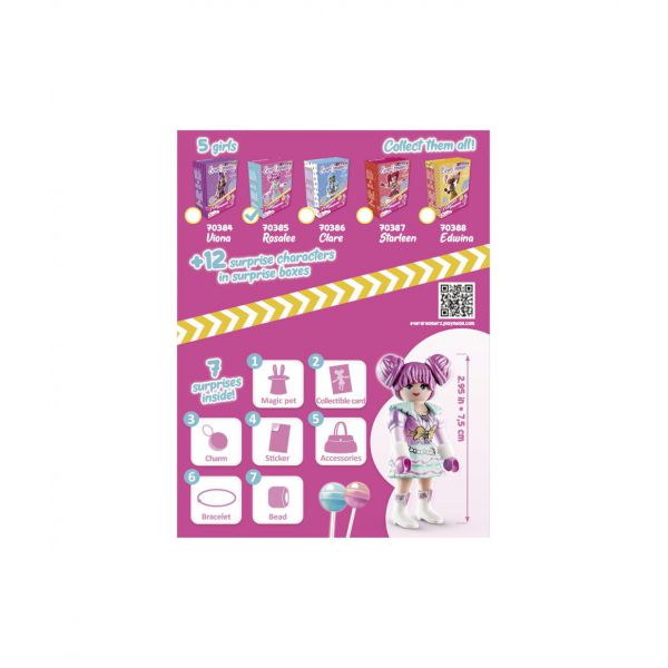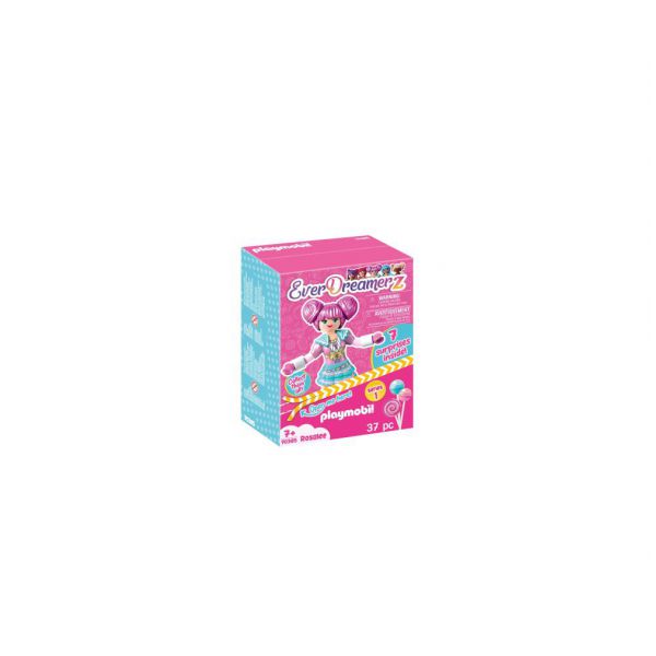 Bine ati venit in lumea viselor…bine ati venit in lumea EverDreamerz! Rosalee, Viona, Edwina, Clare si Starleen sunt cinci tinere prietene cu visuri mari. Atunci cand fetele descopera amuleta magica, un portal catre o alta lume se deschide. Prima oara, cele cinci prietene calatoresc in lumea lui Rosalee, unde totul este plin de dulciuri. Rosalee iubeste enorm de mult dulciurile si este foarte fericita ca a ajuns aici si ii face placere sa imparta tot cu prietenele ei. Dulciurile ei preferate sunt bezelele, briosele si ciocolata. Rosalee este acompaniata de micul ei prieten flamingo care are pana si el un mic rucsacel in care poarta dulciuri. Frica cea mai mare a fetitei este dentistul, dar prietenele ei o sustin si o incurajeaza de fiecare data. Setul contine o figurina Rosalee si 7 surprize: un animalut, un cartonas de colectionat, sticker, accesorii, o bratara si un pandantiv unic. Fiecare set contine o bratara din silicon pe care o poti purta si accesoriza chiar tu, dupa cum iti doresti. Varsta recomandata 7 ani+.