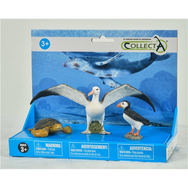 Set de 3 figurine pictate manual Viata Marina - Broasca testoasa, Albatros si Papagal de mare COL84189LPP