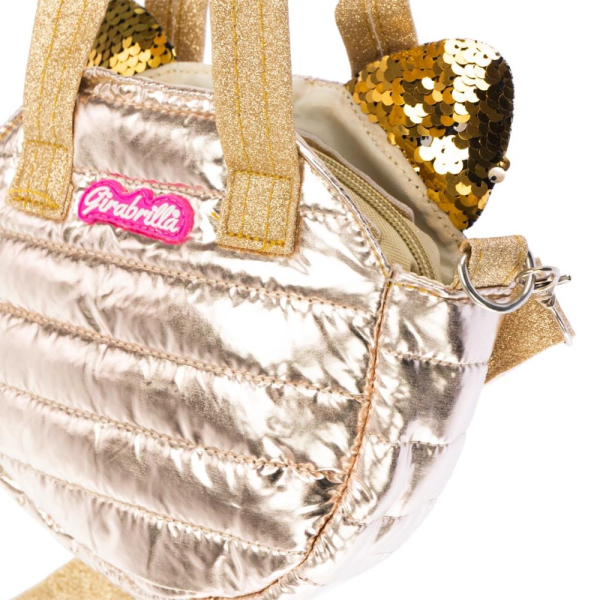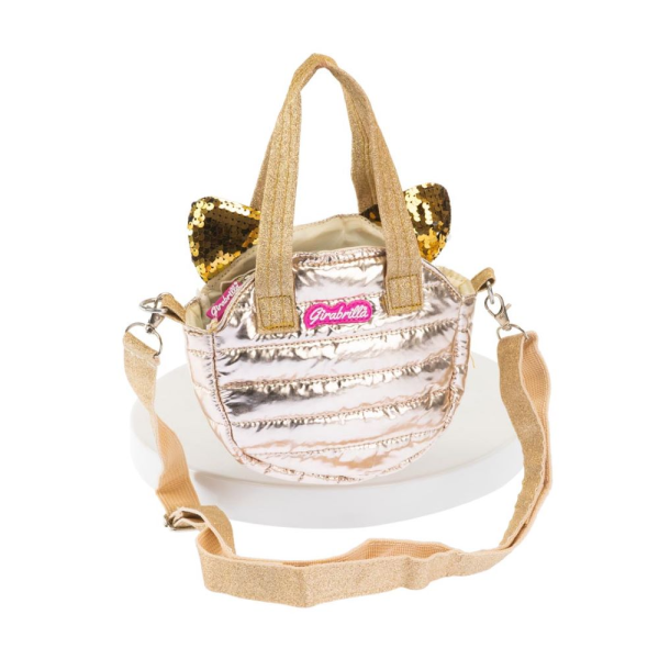 Geanta puffer in culori iridescente, decorata cu urechi de pisicuta din paiete. Spatioasa si moale, ideala pentru plimbari sau joaca. Recomandata de la 6 ani.