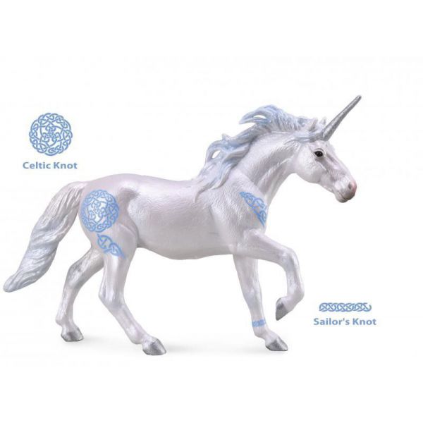 Unicorn armasar - CollectaCuriozitati amuzante: In Evul Mediu si Renastere, unicornul a fost in mod obisnuit descris ca o creatura extrem de salbatica, un simbol al puritatii si al harului.Nodul celtic (pe pulpa) - Acest model se spune ca reprezinta interconectarea vietii si a locului nostru in univers. Nodurile celtice sunt numite noduri nesfarsite datorita faptului ca nu au un sfarsit sau un inceput. Nodurile nesfarsite reprezinta vesnicia naturii.Nodul lui Sailor (pe gat) - Acest design are doua corzi impletite si poate fi creat de marinari in timpul calatoriilor lungi ca un mijloc de a-si aminti de cei dragi. Nodul lui Sailor este simbol al prieteniei, al afectiunii, al armoniei si al iubirii.Material: Plastic cauciucat durDimensiunile produsului: 17.1cm x 11.6cmGreutatea produsului: 159 gCa toate figurinele Collecta, acesta jucarie il va uimi pe copil cu acuratetea detaliilor si a executiei.Vopseaua nu este toxica si nu contine ftalati, figurinele fiind testate pentru siguranta copiilor.