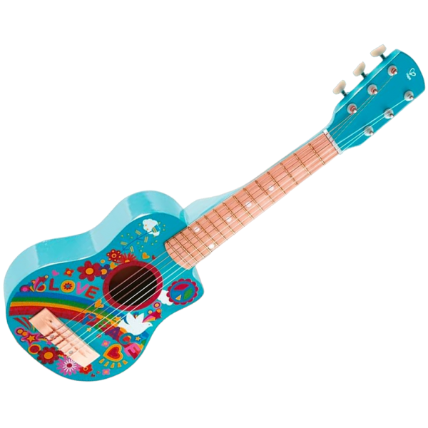 Corzile din nailon sunt blande si fixate corespunzator pe suprafata de lemn pentru a proteja mainile copiilor Chitara poate fi reglata cu precizie si produce un sunet de inalta calitate.