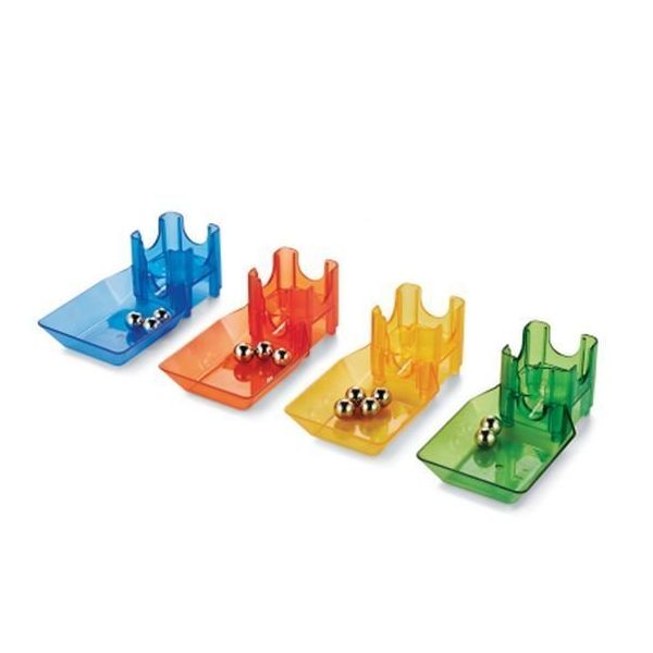 Integreaza aceste patru opritoare de bile in orice constructie Q-BA-MAZE 2.0 pentru o reincarcare si adunare rapida. Setul de patru include un opritor de bile rosu, unul albastru, unul galben si unul verde. Compatibil cu toate seturile Q-BA-MAZE 2.0. Atentie: pericol de sufocare, contine bile mici. Nu este recomandat copiilor sub 3 ani. Varsta recomandata: 6+