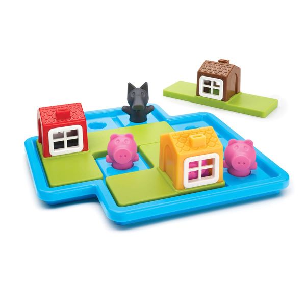 Three Little Piggies – Deluxe este un joc pentru copii din seria Smart Games, realizat cu elemente de inalta calitate si inspirat din celebra poveste a celor trei purcelusi. Jocul include 48 de provocari logice cu dificultati crescatoare, recomandat pentru varstele 3+, fiind conceput special pentru a introduce copiii mici in lumea jocurilor de logica prin joaca si poveste. Provocarile ii invita pe cei mici sa ajute purcelusii sa-si construiasca casele, sa se joace afara sau sa se adaposteasca in siguranta atunci cand apare lupul. Piesele mari sunt usor de manevrat, iar copiii vor fi fascinati de modul in care purcelusii se potrivesc in case si pot fi vazuti prin ferestre.