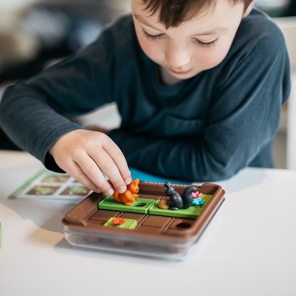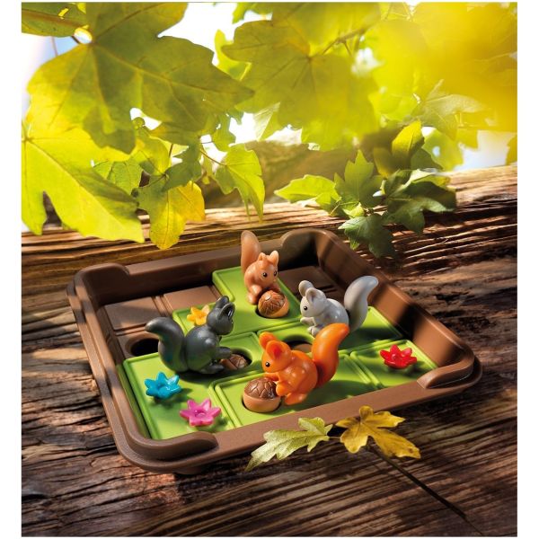 Squirrels Go Nuts! este un joc de logica cu provocari tip puzzle glisant, din gama Smart Games, realizat din materiale de inalta calitate si cu un design atractiv pentru copii. Jocul include 60 de provocari logice cu dificultati crescatoare si este recomandat pentru varstele 6+, fiind ideal pentru dezvoltarea gandirii si a abilitatilor cognitive.