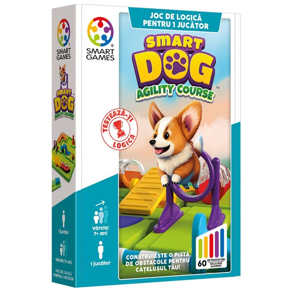Smart Dog este un joc de logica cu provocari tip puzzle din seria Smart Games, realizat din elemente de inalta calitate si cu un design incantator, dedicat copiilor pasionati de animale si jocuri inteligente. Jocul include 60 de provocari logice cu dificultati crescatoare, recomandat pentru varstele 7+, si este conceput pentru a testa si dezvolta gandirea logica, planificarea si atentia la detalii. Provocarea este sa creezi un traseu corect cu obstacole, astfel incat catelul sa poata parcurge drumul complet la trap, fara sa rateze niciun obstacol.