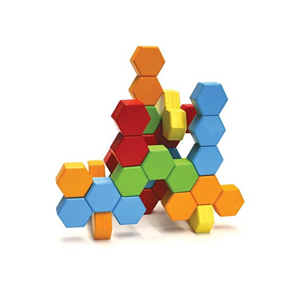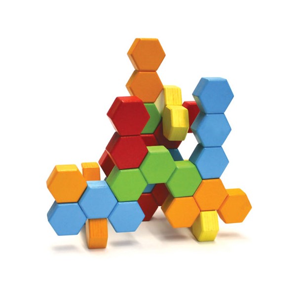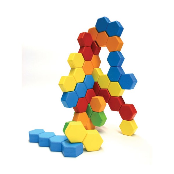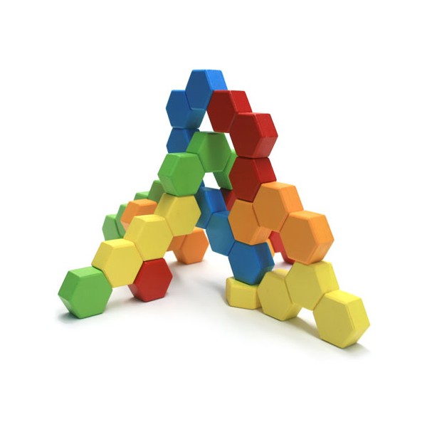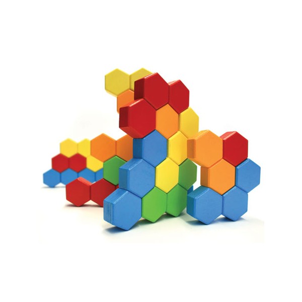 Setul include: 24 blocuri de constructie hexagonale in culori viu colorate