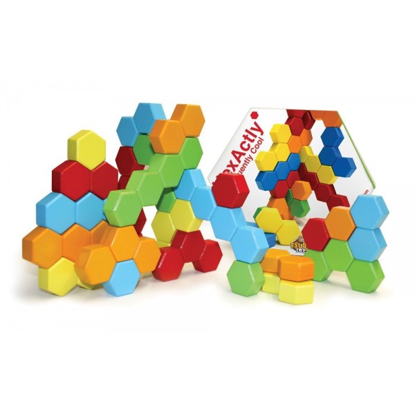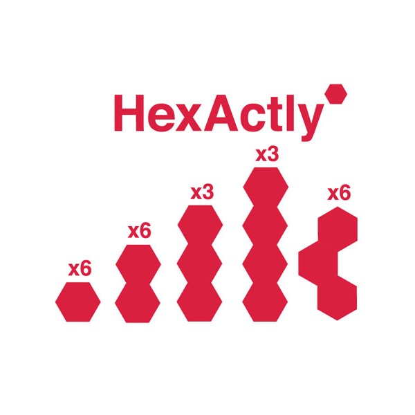 Fiecare dintre piesele de constructie Hexactly sunt alcatuite din blocuri hexagonale conectate in randuri sau unghiuri.